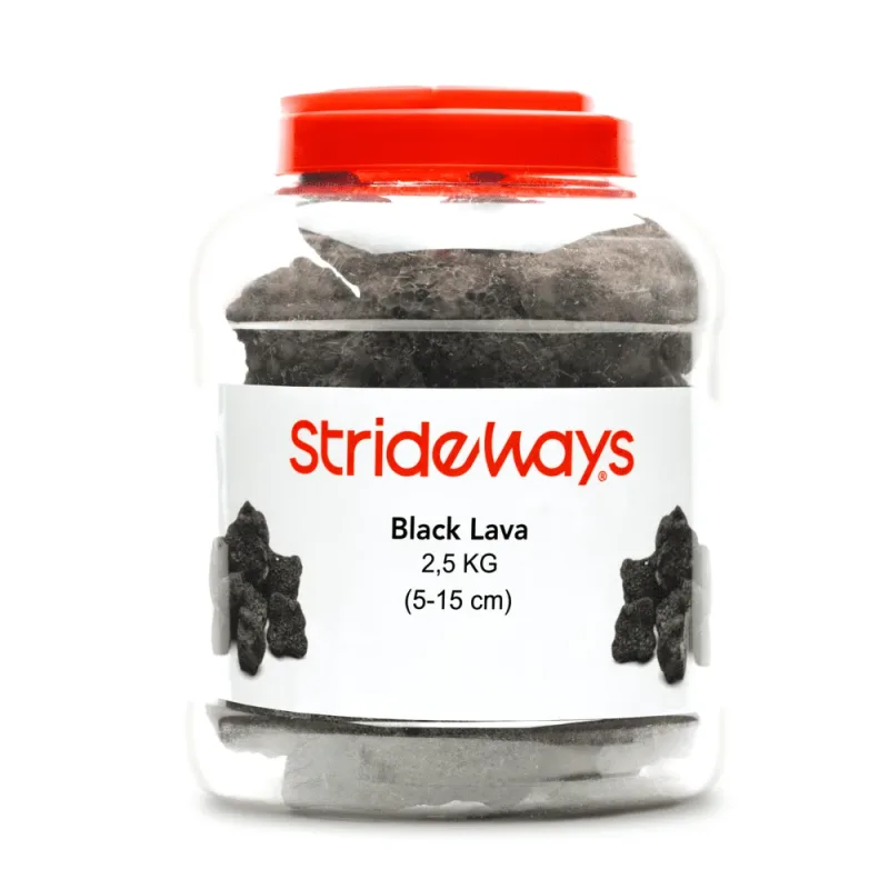 Die Strideways Black Lava Stone Bottle enthält etwa 2,5 kg natürliches schwarzes Lavagestein, das sich perfekt für Aquascaping, Terrarien und Süßwasseraquarien eignet. Jeder Stein hat eine einzigartige, unregelmäßige Form mit einer dunklen, porösen Textur, die nicht nur optisch beeindruckt, sondern auch eine ideale Oberfläche für Moos, Pflanzen und nützliche Bakterien bietet. Die Steine sind neutral, leicht und sicher für die Aquarienbewohner und helfen dabei, atemberaubende Unterwasser- oder Terrarienlandschaften zu schaffen.