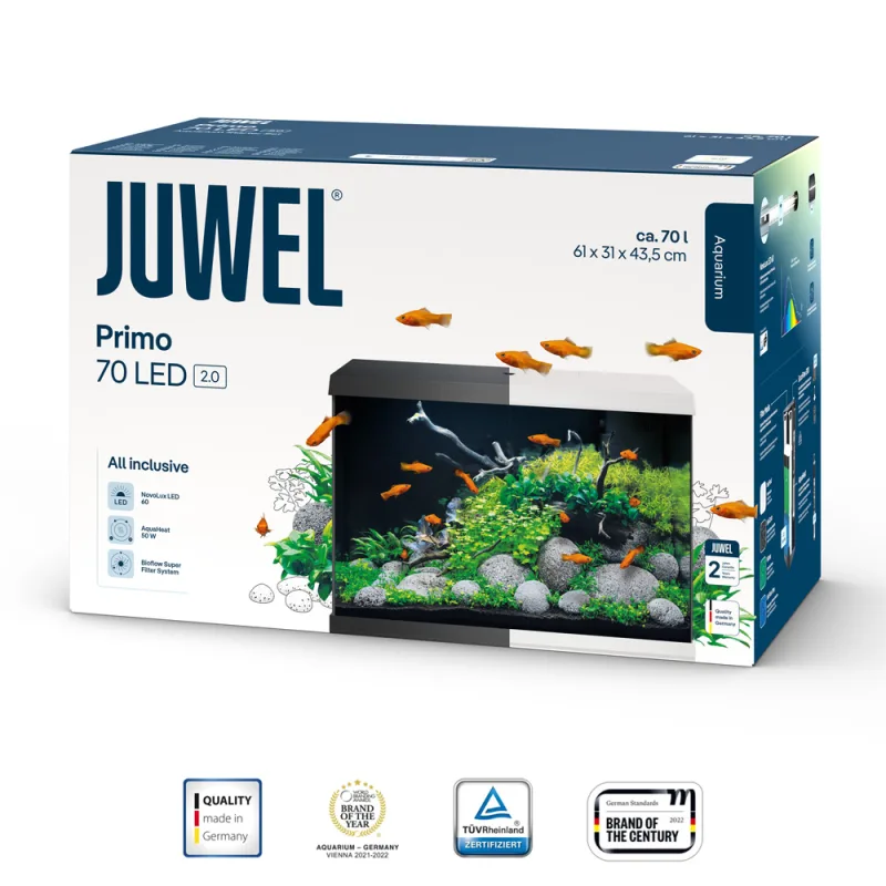 El set de acuario Primo 70 2.0 LED de Juwel es el modelo básico perfecto con la mejor tecnología para principiantes. Incluye una moderna iluminación LED y un eficaz sistema de filtración.