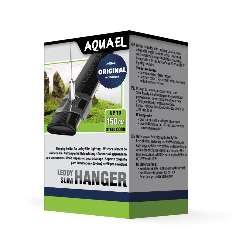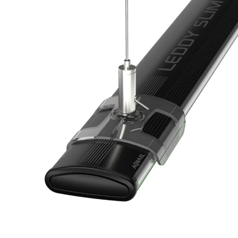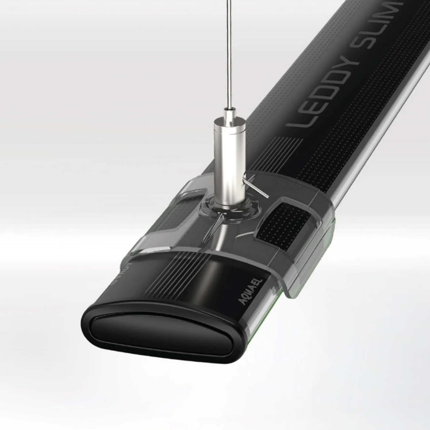 Suportes universais de suspensão de iluminação Leddy Slim, perfeitos para aquários abertos. Colocando as lâmpadas nos suportes de montagem no teto, o aquário fica perfeitamente iluminado. Além disso, permite uma disposição livre – as rochas, raízes e plantas podem sobressair acima da superfície da água. Um aquário com iluminação suspensa é um elemento original do design de interiores moderno e enquadra-se nas tendências actuais.