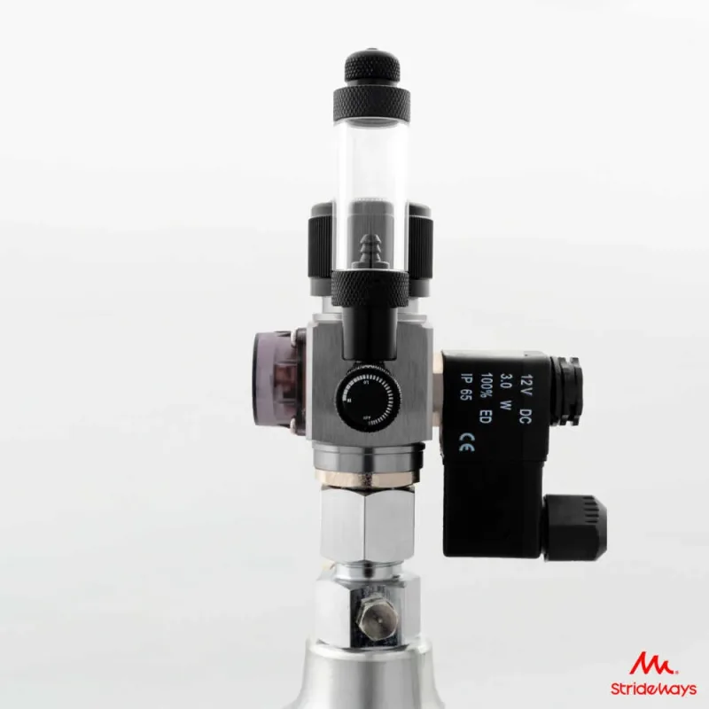 - Regulação de precisão muito elevada, válvula de agulha integrada com regulação suave e precisa;
